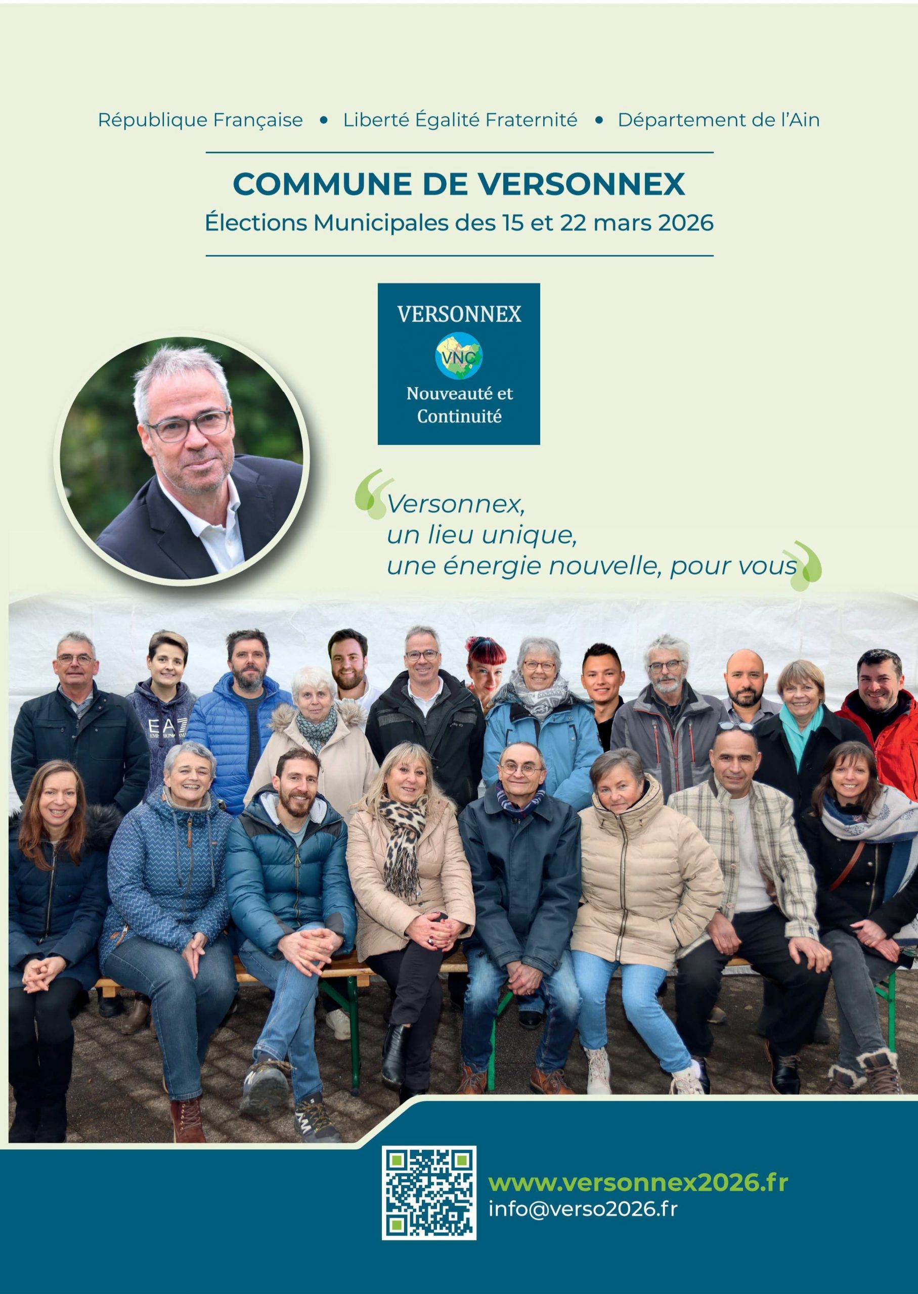 Une équipe rassemblée autour d’un projet clair : préserver ce qui fonctionne, améliorer ce qui peut l’être, et construire collectivement le Versonnex de demain.